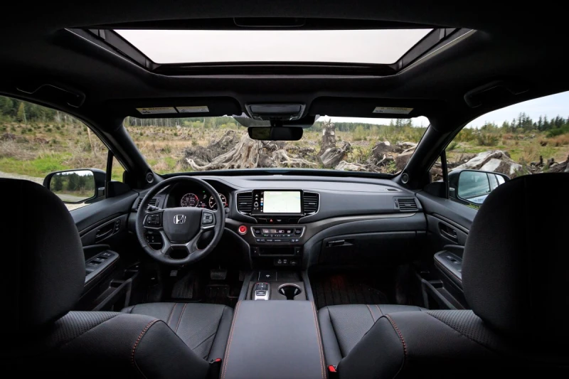 Салон Ridgeline – это как уютная гостиная на колесах. Простор для пятерых, качественные материалы и продуманная эргономика делают его одним из самых комфортных в классе. Базовая версия Sport идет с тканевыми сиденьями, а RTL и выше – с кожей и подогревом передних кресел. В топовой Black Edition добавляются вентилируемые передние сиденья, подогрев задних и красная амбиентная подсветка – мелочь, а настроение создает.